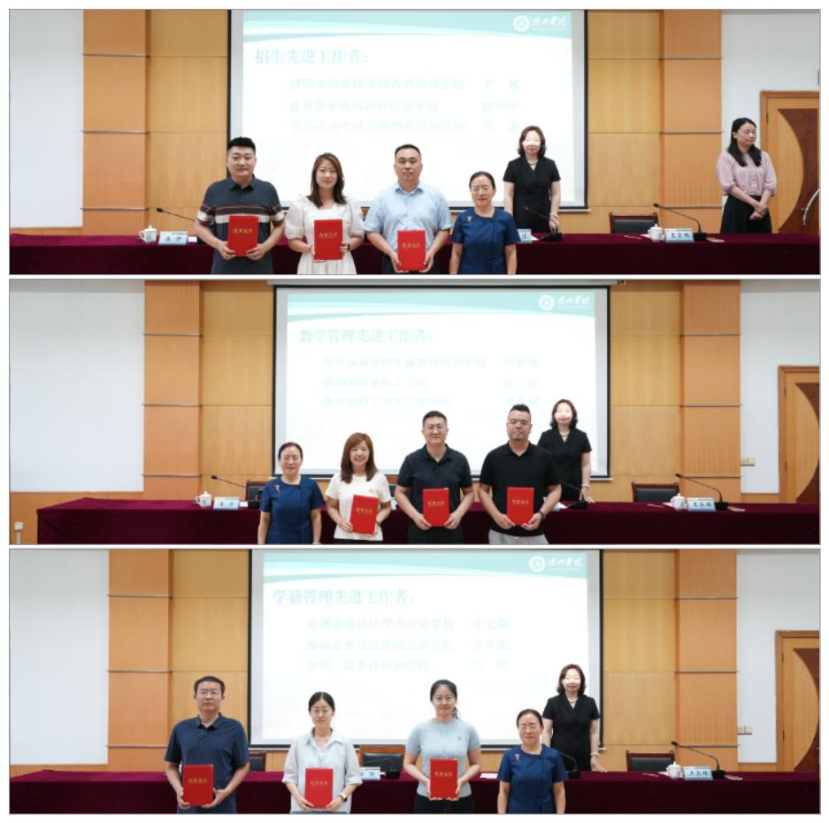 会议汇报了公司高等学历继续教育2024年工作情况与2025年工作计划,表彰了办学先进集体和先进个人,颁发了奖牌与荣誉证书。济南市历城区领创教育培训公司董事长王增军和海阳市商业职工公司董事长姜帅作了办学经验分享。
