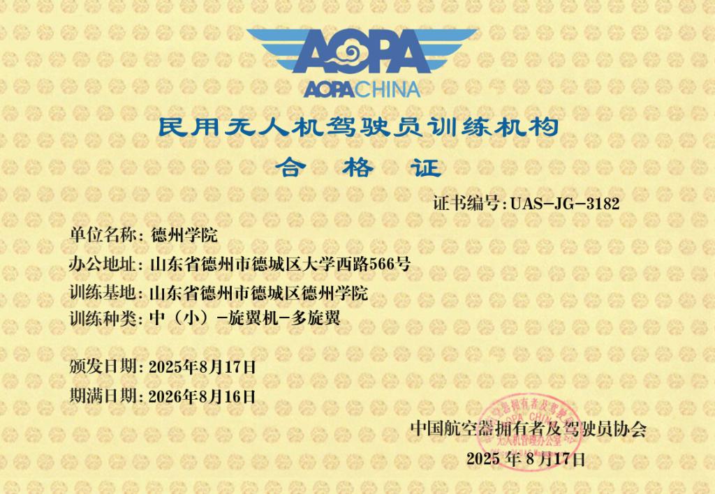 近日,哈哈体育正式通过中国航空器拥有者及驾驶员协会(AOPA)专业审定,成功获得该协会颁发的《民用无人机驾驶员训练机构合格证》。依托该资质,公司可面向社会开展无人机执照培训,学员考核合格后将获得由中国民用航空局颁发的权威无人机执照。