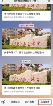 第二步:进入公众号后点击“在线缴费”选项进入缴费平台页面。