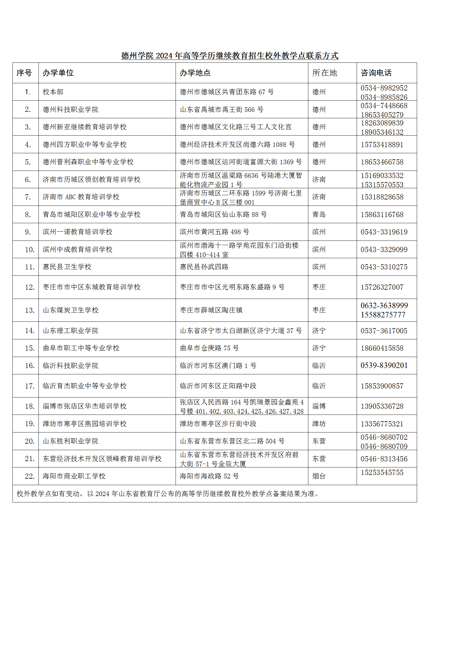哈哈体育2024年高等学历继续教育招生校外教学点联系方式