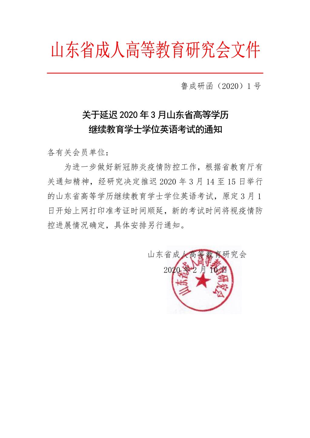 关于延迟2020年3月山东省高等学历继续教育学士学位英语考试的通知