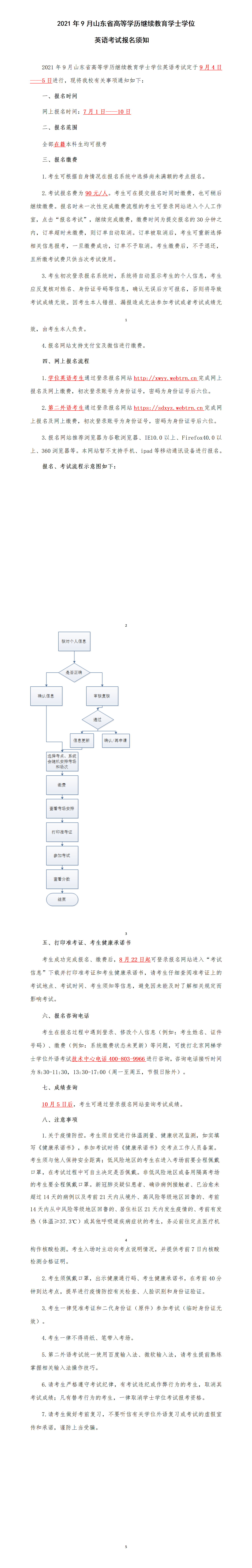 2021年9月山东省高等学历继续教育学士学位英语考试报名须知