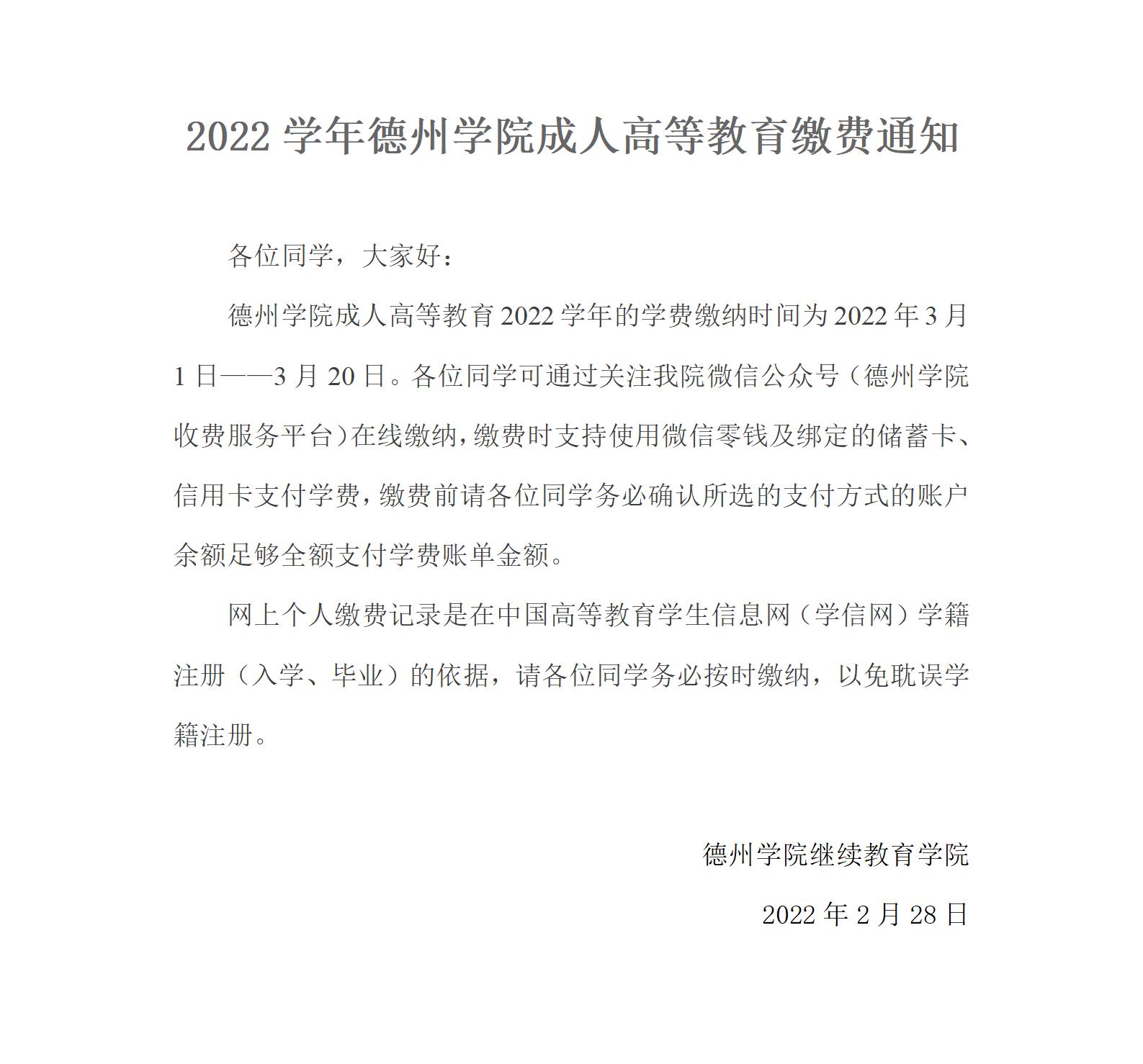 2022学年哈哈体育成人高等教育缴费通知