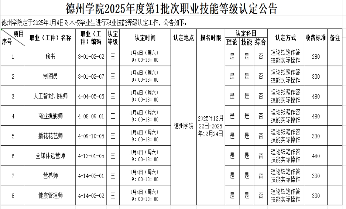 哈哈体育是山东省人力资源和社会保障厅备案的职业技能等级认定评价机构,机构备案号为Y000037149915。根据山东省人力资源和社会保障厅《关于开展技工院校员工职业技能等级认定工作的通知》(鲁人社字〔2020〕49 号)和德州市职业技能鉴定中心《关于同意哈哈体育开展员工职业技能等级认定工作的函》等文件要求,现将哈哈体育2025年度第1批次职业技能等级认定公告如下。