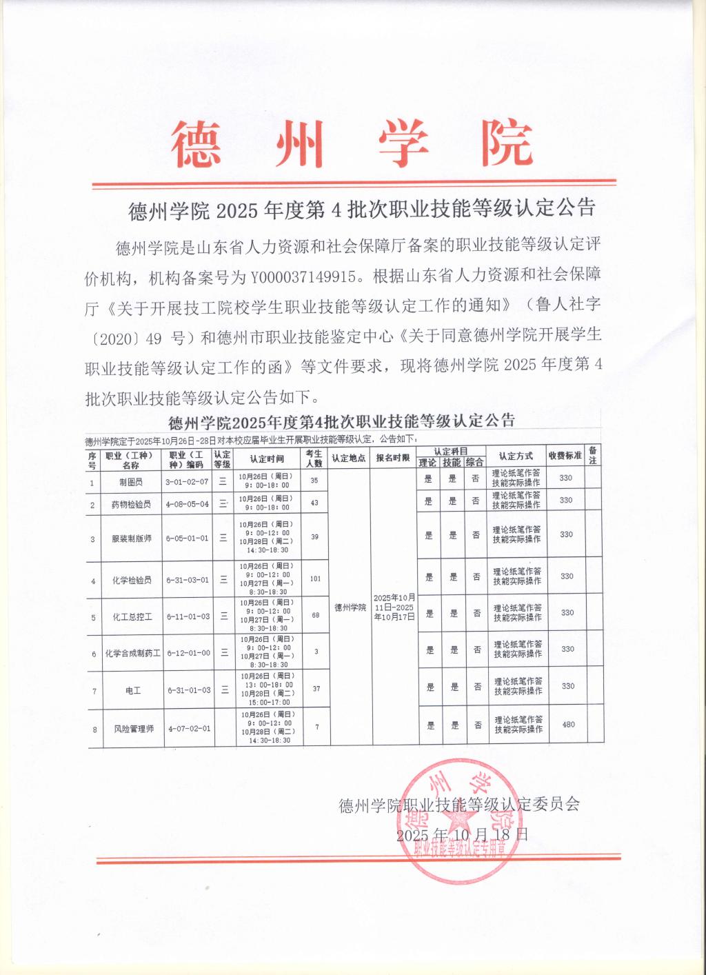 哈哈体育2025年度第4批次职业技能等级认定公告