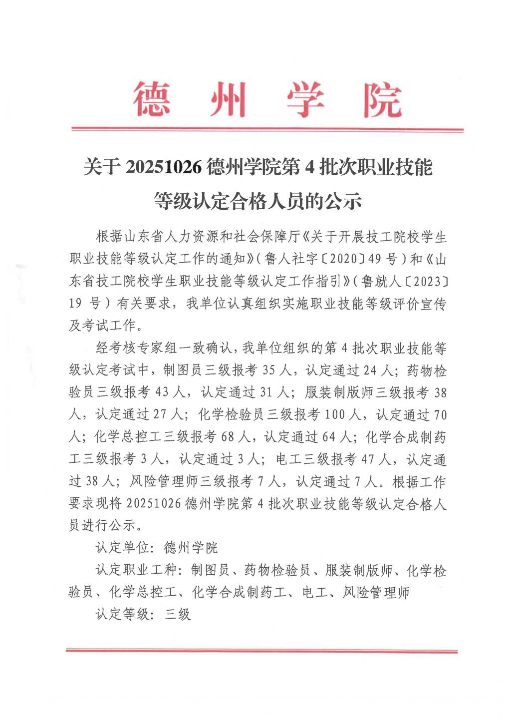 关于20251026哈哈体育第4 批次职业技能等级认定合格的人员的公示